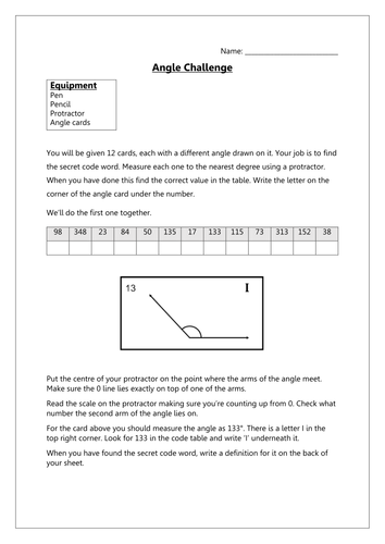 Measuring Angles Code Breaker Teaching Resources